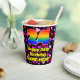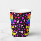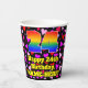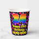 This happy and fun birthday-themed paper cup design features a large number “24” with a rainbow spectrum gradient inspired pattern, along with the message “Happy 24th Birthday,”, and an editable name. The background features a pattern of pink, red, and purple heart shapes. Joyful, friendly paper cups like this might be fun to have at a birthday party being held to celebrate somebody’s 24th birthday. [~Z0000548]