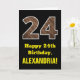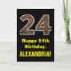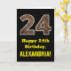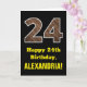 24th Birthday: Name, Faux Wood Grain Pattern "24" Card
