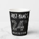 This luxurious 1920s-1930s era inspired art deco look birthday themed paper cup design has an editable name, along with the message “24TH BIRTHDAY PARTY!”. The number “24TH” has a fancy geometric lined appearance. Elegant birthday themed paper cups like these might be used at a birthday party celebrating somebody’s twenty-fourth birthday, or some other 24th event. [~Z0000658]