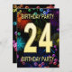 Add a name to customise this unique party invitation. 24th birthday party invitation with fireworks and bubbles. Add your details inside to create a perfect fun invite. Light up the sky with these glorious fireworks. An invitation to a birthday party that has style and loads of fun.