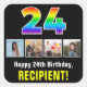 24th Birthday: Rainbow “24”; Custom Photos & Name Square Sticker
