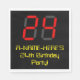 This nerdy and fun birthday paper napkin design features a large number "24" with a red seven segment digital display style appearance, along with a personalised name and the message "24th Birthday Party!" in nerdy retro style yellow text, on a black coloured background. Fun, editable paper napkins like this might be used at a birthday party being held to celebrate somebody’s twenty fourth birthday. [~Z0000388]