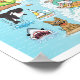 Bright and detailed whimsical vision of Southern California - featuring Los Angeles, Long Beach, San Diego and other major and minor cities plus most beach towns - zany characters play on the beach and desert, mountains and valleys. This charming scene has it all – a surfer hangs ten while a mermaid lounges on a rock and an alien surveys the weirdness, a killer whale leaps out of the water as a t-rex roars a challenge, a muscular beach couple both flex to impress, zoo animals wait for tourists and a bull smashes into a bull fighter…