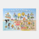 Never a Dull Moment! A cartoon map of Southern California - showcasing Los Angeles, Orange County, San Diego, Beverly Hills, Santa Monica, Laguna, Huntington, La Jolla, Coronado, Riverside, Palm Springs, El Centro and the border cities of Tijuana, Tecate and Mexicali in Mexico, plus Joshua Tree, Anza Borrego, Salton Sea - Cartoon characters of all sorts swim and splash and play beneath the bright California sun shining high above it all.