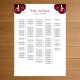 250 Burgundy & Gold Floral Wedding Seating Chart