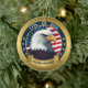 Background: The eagle is superimposed over a circular American flag design with a blue field of stars and red and white stripes.