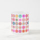 A wrap around mug pattern consisting of 25 colourful mandalas repeated around the mug.
