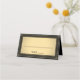 Compliment black and gold party decorations with elegant name and table number folded place cards. To use as escort cards, set on a table near the entrance for guests to pick up and take to their seats, eliminating the need for a separate seating chart. The event title and date on back are simple to personalize or delete. The colors and font styles are easy to change with the Zazzle Design Editor tool. The modern black and gold design features a faux foil background, a stylish striped border and classic vintage art deco typography. Please note that the gold is printed gradient color with slightly darker edges, not metallic foil. These place cards add an elegant unique touch to a special celebration, such as a wedding reception, milestone birthday or anniversary party.