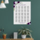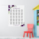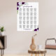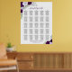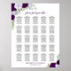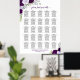 This beautiful wedding seating chart features a rustic boho chic watercolor design of royal purple, lavender, and plum coloured roses, accompanied by sprigs of eucalyptus leaves and garden greenery. With 25 tables and a traditional layout, it can accommodate up to 250 guests with 10 seats per table. The elegant calligraphy title reading "please find your table" adds a touch of sophistication, and there's space to include the names of the couple and wedding date at the bottom. This seating chart not only beauty and charm to your wedding reception, but also ensures that your guests can easily locate their assigned tables.