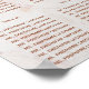 This seating chart has 25 tables. The background is white marble. The header is a faux metallic copper stripe. The text is written in caps and has a red brown colour, like the copper, except the message "Please find your seat!" in the header, which is white.