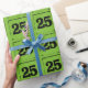 Holiday wrapping paper with tiled black text that reads simply 25 to depict the date, December 25, Christmas! You can customise the green background to be any colour you want.
