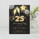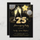 25th Anniversary Gold Black Balloons Champagne Invitation
