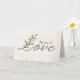 LOVE text in an elegant script font with green leaves on soft neutral texture background for 25th anniversary congratulations