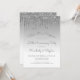 This trendy 25th wedding anniversary surprise party invitation features a sparkly silver faux glitter drip border and silver ombre background. The words "Shhh! It's a Surprise," "25th Anniversary Party" and the first names of the couple appear in casual silver gray handwriting script, with the rest of the customizable text in sans serif font. The same silver glitter drip design appears on the reverse side.