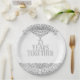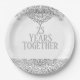 Elegant silver lace border on white textured background for 25th wedding anniversary.