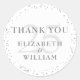 25th-anniversary silver stardust thank you classic round sticker. Designed to coordinate with our 25th Anniversary Silver Stardust collection. Featuring delicate silver stardust. Personalise with your names in chic silver lettering. Designed by Thisisnotme©