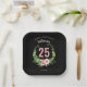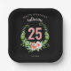 Chic 25th or any age birthday paper plate with a blush pink floral wreath design on a black background. Personalise with your name, age and text.