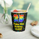 This cheerful and colourful music themed birthday paper cup design features a large number “25” with a rainbow spectrum gradient inspired pattern, along with the message “Happy 25th Birthday,”, and a custom name. The background features a colourful music notes and symbols pattern. Colourful, vibrant paper cups like this might be fun to have at a birthday celebration being held in celebration of somebody’s 25th birthday. [~Z0000541]