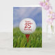 Close up of a white golf ball on a red tee in grass with sky background for 25th birthday.