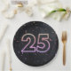 25th Birthday Neon Sign On Black Paper Plate