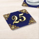 Regal decorated with gold text and ornate corners coaster with blue background for a 25th birthday. Alternatively can be used for an anniversary.