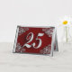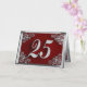 Custom greeting text, regal decorated with silver text and flourish ornate corners folded greeting card with red background for a 25th birthday. Alternatively can be used for an anniversary.