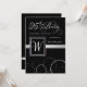 Formal yet contemporary 25th Birthday celebration invitations -- Black with silver script and monogram. Customise the name, date, and details for this special and honoured occasion. © Teri Francis. Matching postage and thank you cards available.