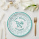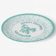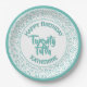 25th Birthday Random Number Pattern 25 Teal/White Paper Plate