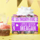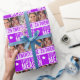 Graphic purple, and white with a little white heart sister birthday wrapping paper. Bright graphic birthday wrap with three placeholders for your own photos and to customise with your own name, age, and inside message. A matching birthday card is also available. Unique design by Sarah Trett for www.mylittleeden.com