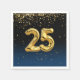 Gold mylar party balloons on gradient black and blue with gold star confetti for 25th anniversary or birthday party.