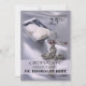 Add your name to the front of this beautiful 25th Ordination Anniversary Invitation. Silver paten with hosts and ornate cross are laid across a satin cloth. Customise the inside with your personal details for the celebration of your silver jubilee.