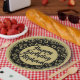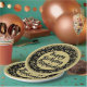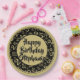 This numeric design has a black and gold random number pattern with a gold milestone number 25 repeated in varied sizes and angles. There is a gold circle in the centre for your text and black-and-gold rings around the rim.