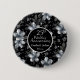 25th Silver Glitter Floral Wedding Anniversary button - featuring silver and black glitter with floral silver glitter and Silver Letters and Number, this button is an unique, elegant, chic 25th Wedding Anniversary keepsake to offer to your Guests at your Celebration party. You can personalise the names of the Couple and the Date year of the Silver Wedding Anniversary!
