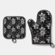 25th Silver Glitter Floral Wedding Anniversary Oven Mitt & Pot Holder Set