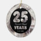 Celebrate the 25th wedding anniversary of your favourite couple with this custom ornament! A silver coloured sparkle effect forms a festive border of light. Two names, the words, “25 Years” and a wedding date or other meaningful date are featured near the centre and can be personalised.
