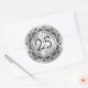 Elegant 25th wedding anniversary with a black lace border frame and metallic look silver background.