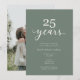 25th wedding Anniversary Elegant Photo Sage Green Invitation
