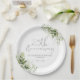 25th Wedding Anniversary Greenery Silver Script Paper Plate