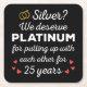 'Silver? We deserve Platinum for putting up with each other for 25 Years' quote for a couple who got married 25 years ago or a couple renewing wedding vows on their silver anniversary.