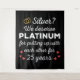'Silver? We deserve Platinum for putting up with each other for 25 Years' quote for a couple who got married 25 years ago or a couple renewing wedding vows on their silver anniversary.