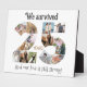 Commemorate your twenty five years of marriage with our 25th Wedding Anniversary Photo Collage Tabletop Plaque with Easel. This elegant collage beautifully arranges 14 cherished photos in the shape of a number "25", allowing you to relive the special moments from each month of your journey as a married couple. Expertly printed on premium-quality material, the collage is designed with a sleek built-in easel for easy display on any tabletop or shelf. There is text that reads " We survived 25 years and our love is still strong". If you like, you can personalise this text with your own message instead.