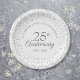 25th Wedding Anniversary Silver Hearts Confetti Paper Plate