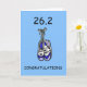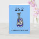 A pair of blue and white training shoes tied together by their laces, accompanied by the words '26.2 Congratulations'. The image has a blue coloured background.