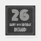 This Roaring Twenties inspired birthday paper napkin design features a large Art Deco style inspired number "26", the message "HAPPY 26th BIRTHDAY,", a custom name, and a border pattern consisting of lines. Fun, personalised birthday themed paper napkins like this might be used at somebody’s twenty sixth birthday celebration. [~Z0000395]
