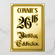 The front of this luxurious twenty-sixth birthday celebration foil announcement card design features the message “26th Birthday Celebration” in elaborate script-style text. It also has an editable name. The back features personalised details about the event, such as the date, time, location/venue, and any other relevant information. Fancy, elaborate, customisable invitations like these might be used to invite guests to a birthday celebration/party being held to honour somebody’s twenty-sixth birthday. [~Z0000596]