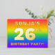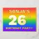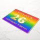 The front of this eye-catching twenty-sixth birthday party foil invitation card design features a customisable name, a large number “26th”, the message “BIRTHDAY PARTY!”, and a border. The background of the front features a fun, multicolored, rainbow spectrum inspired gradient pattern. The back features personalised details about the event, such as the date, time, place/venue, and any other important information. Editable invitations like these might be a fun way to invite attendees to a birthday party/gathering being held in celebration of somebody’s 26th birthday. [~Z0000599]