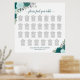 This lovely 27-table wedding seating chart that exudes rustic elegance and natural beauty. Adorned with a hand-painted watercolor floral design, featuring roses in shades of teal, turquoise, aqua, and cyan, the design is accented with delicate sprigs of eucalyptus leaves and garden greenery, while an elegant script calligraphy title adds a touch of refined grace. With seating arrangements for 270 guests, at 10 seats per table, this seating chart is both practical and aesthetically pleasing, making it easy for your guests to find their designated seats.
