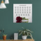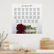 This beautiful 27 table wedding seating chart features a photo of a single long stemmed burgundy, maroon, or wine red coloured rose lying on its side reflecting in water with waves and ripples. The title reads "please find your table" in elegant lacy script calligraphy. There is space for the couples' names and wedding date. This chart has table assignments for 270 guests at the traditional seating arrangement of 10 people per table.
