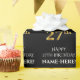 This elegant and luxurious birthday themed wrapping paper design features the message "HAPPY 27th BIRTHDAY,", an editable name, and the birthday number "27th" having a faux/imitation gold inspired look pattern. The background is coloured black. Wrapping paper like this might be used when preparing presents or gifts to be given in celebration of somebody’s 27th birthday. [~Z0000454]