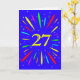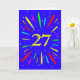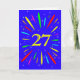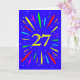 An explosive 27th birthday card! What a wonderful way to send birthday greetings. The number 27 in bright yellow with an explosion of bright colours and stars.